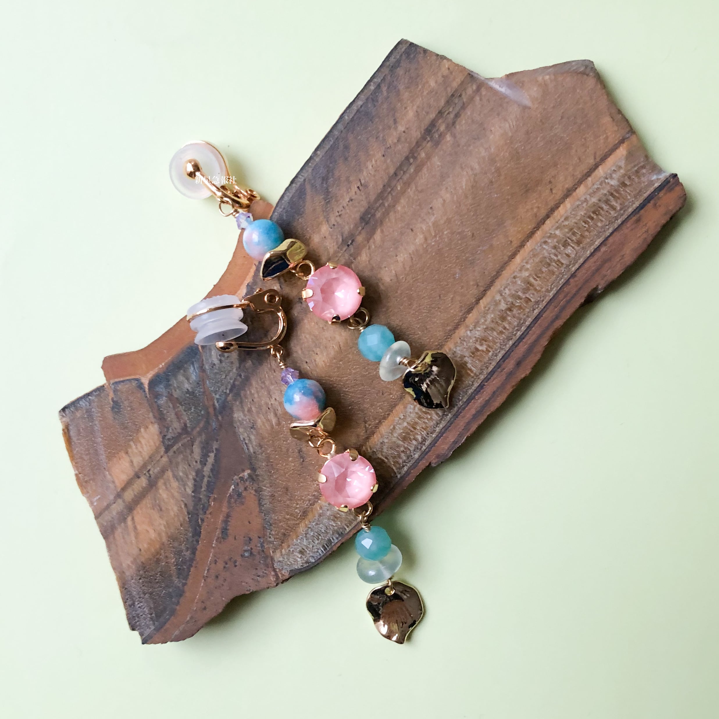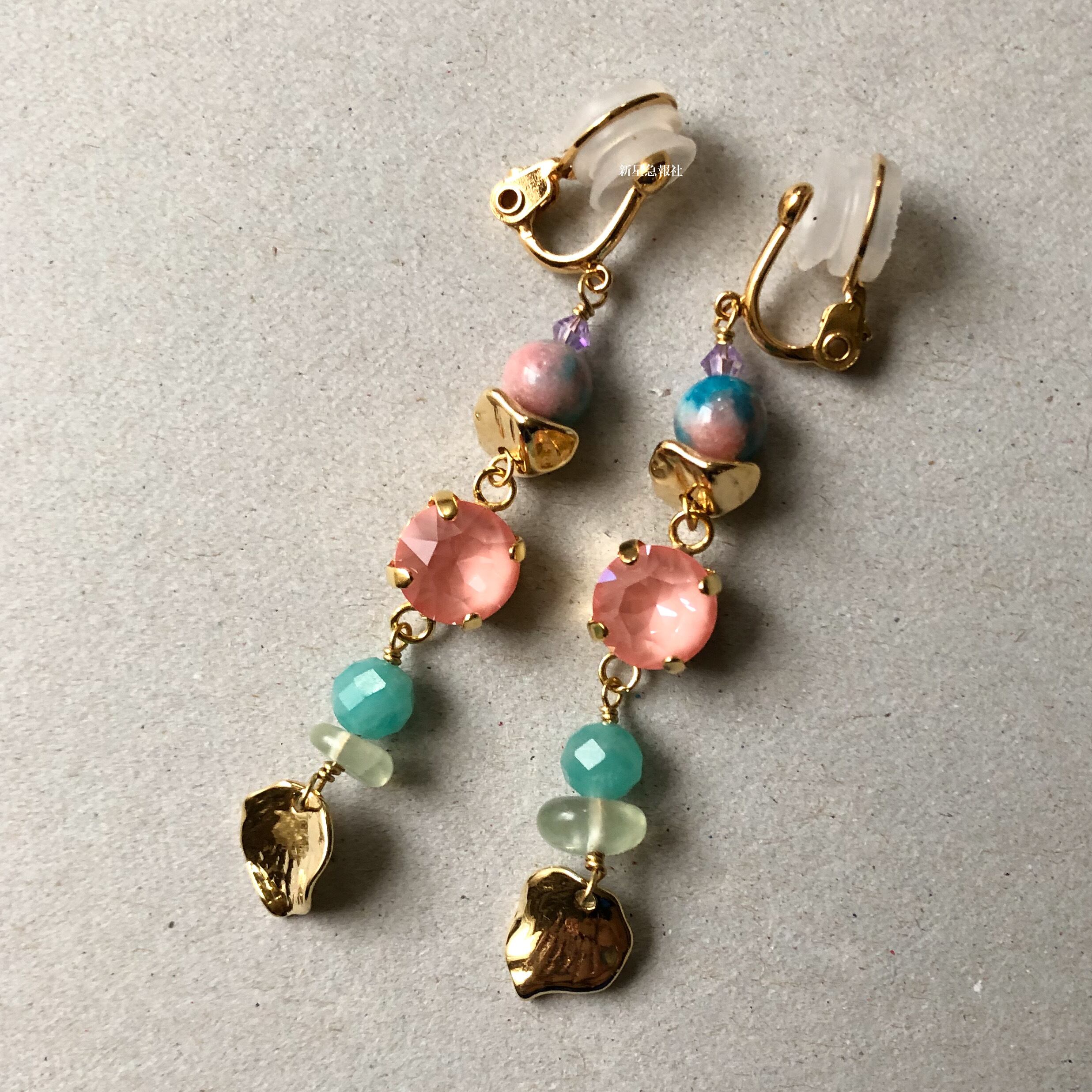 ガラス(オーストリア製)、天然石(染色)、アマゾナイト、プレナイト