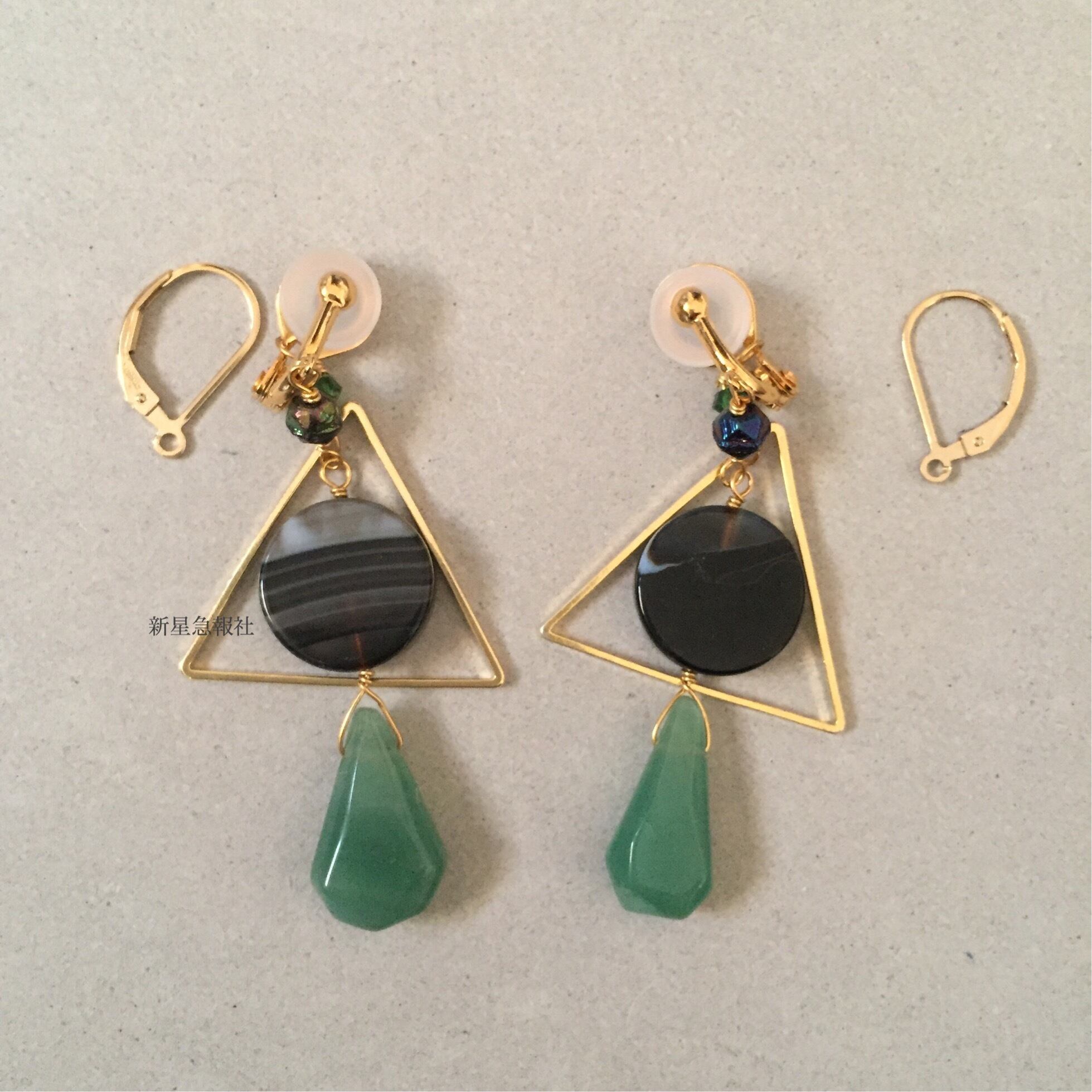 アクセサリーは一部にオニキス、グリーンアベンチュリン