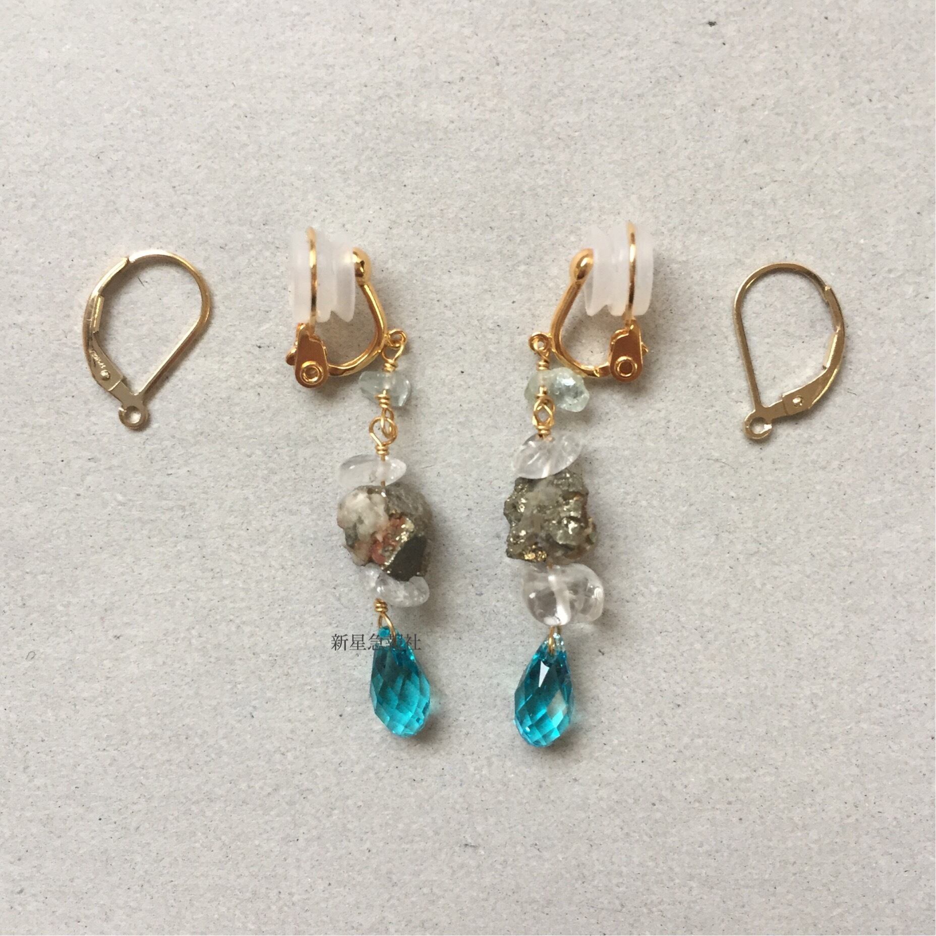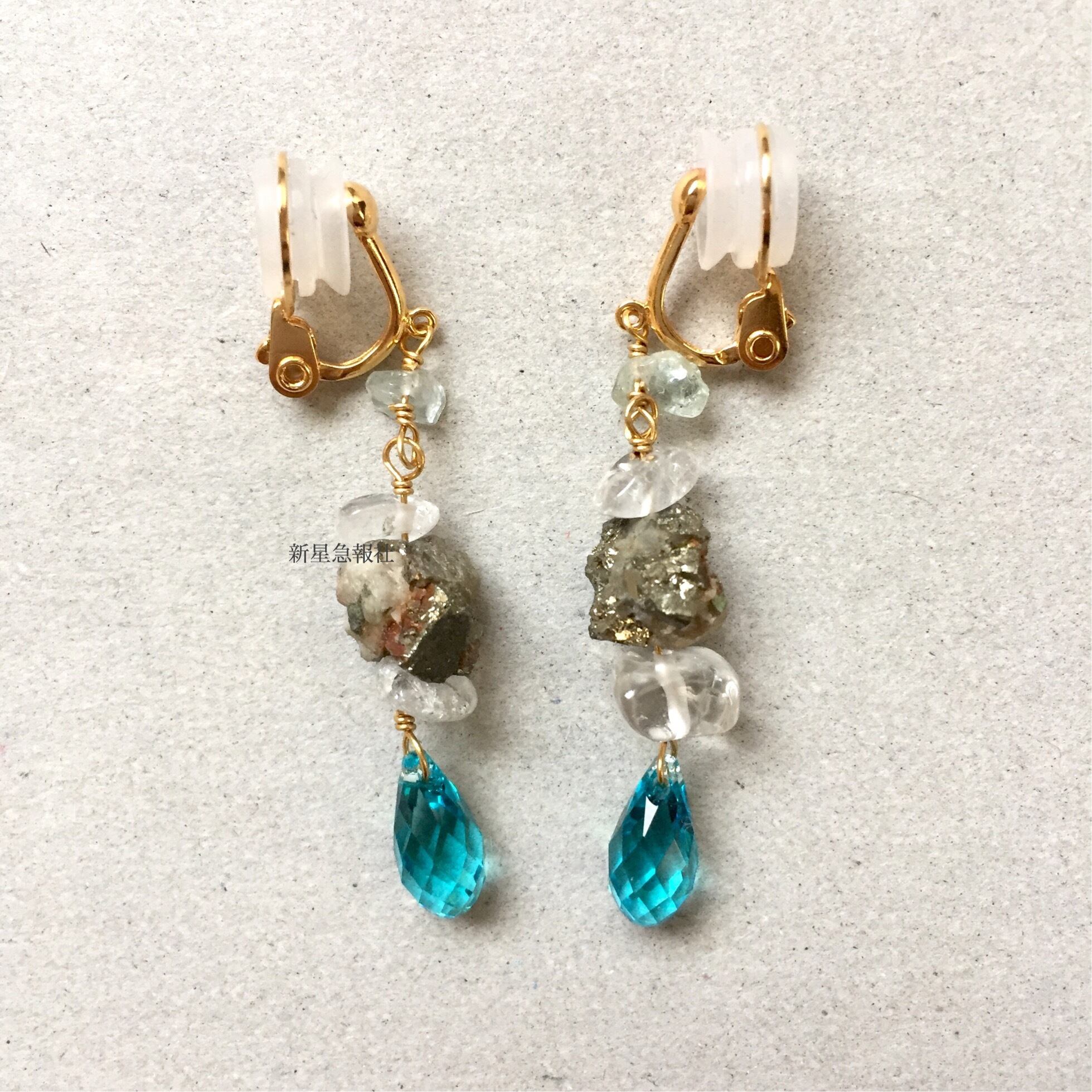 アクセサリーは一部にアクアマリン、水晶、母岩つき黄鉄鉱