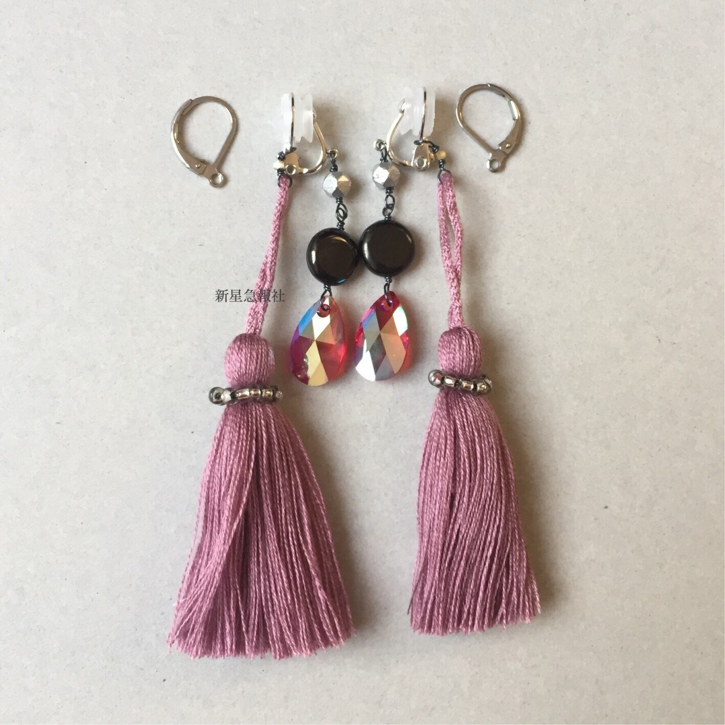 アクセサリーはアクリル、ジェット、ガラス(一部にスワロフスキー社製、フランスヴィンテージビーズ)を含みます。