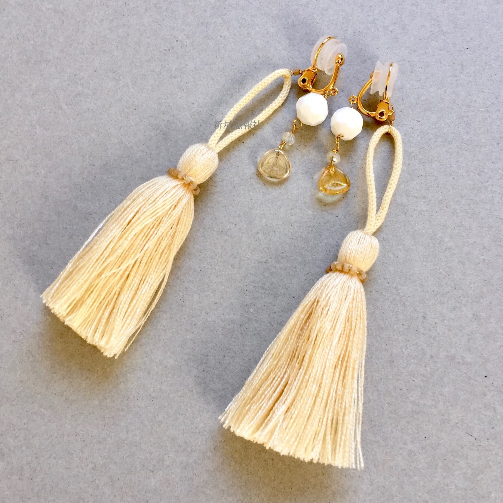アクセサリーはアクリル、ガラス(一部にスワロフスキー社製ヴィテージ、チェコビーズ、日本製)を含みます。
