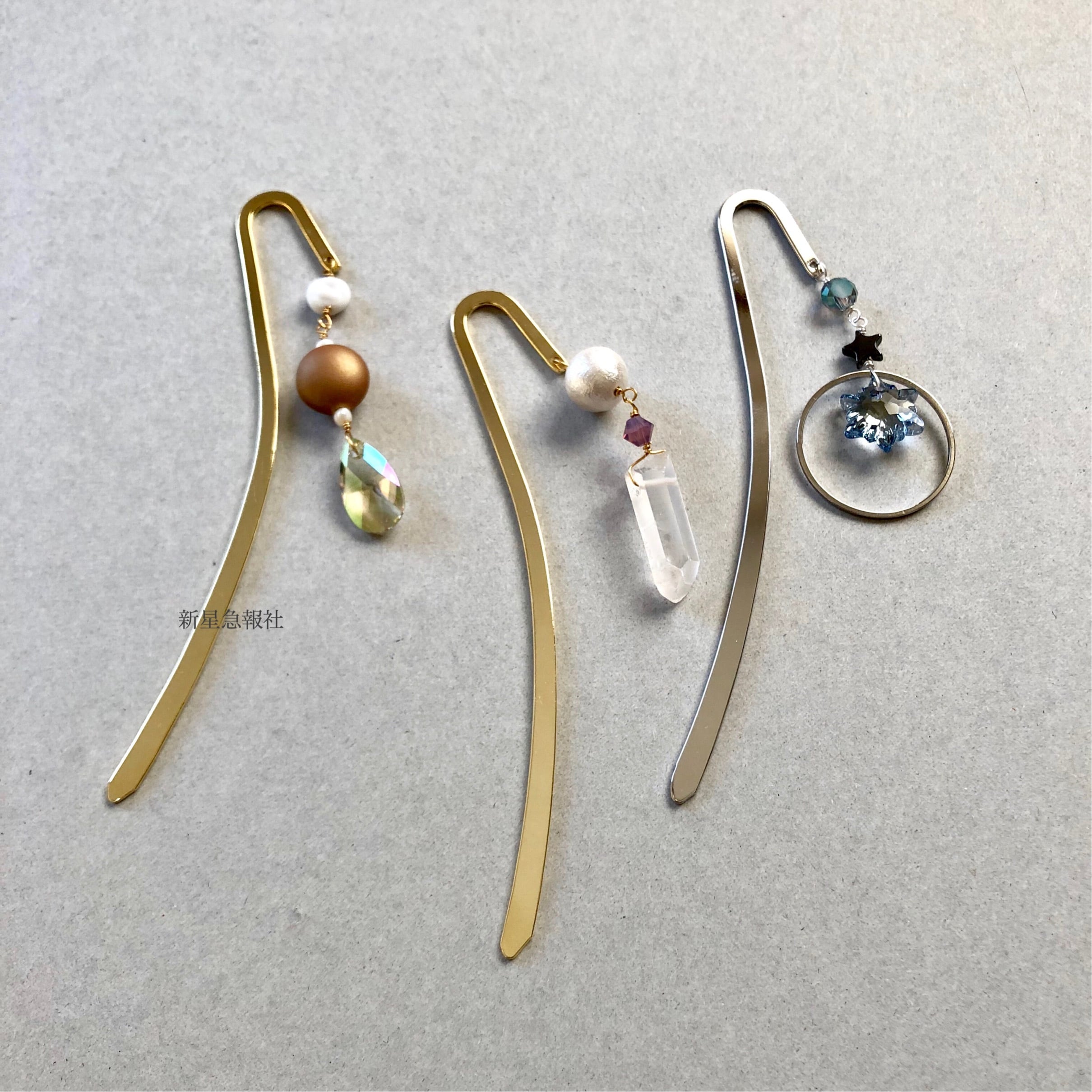 ガラス他ストーン類を使用したしおりがランダムで一本添付されます。