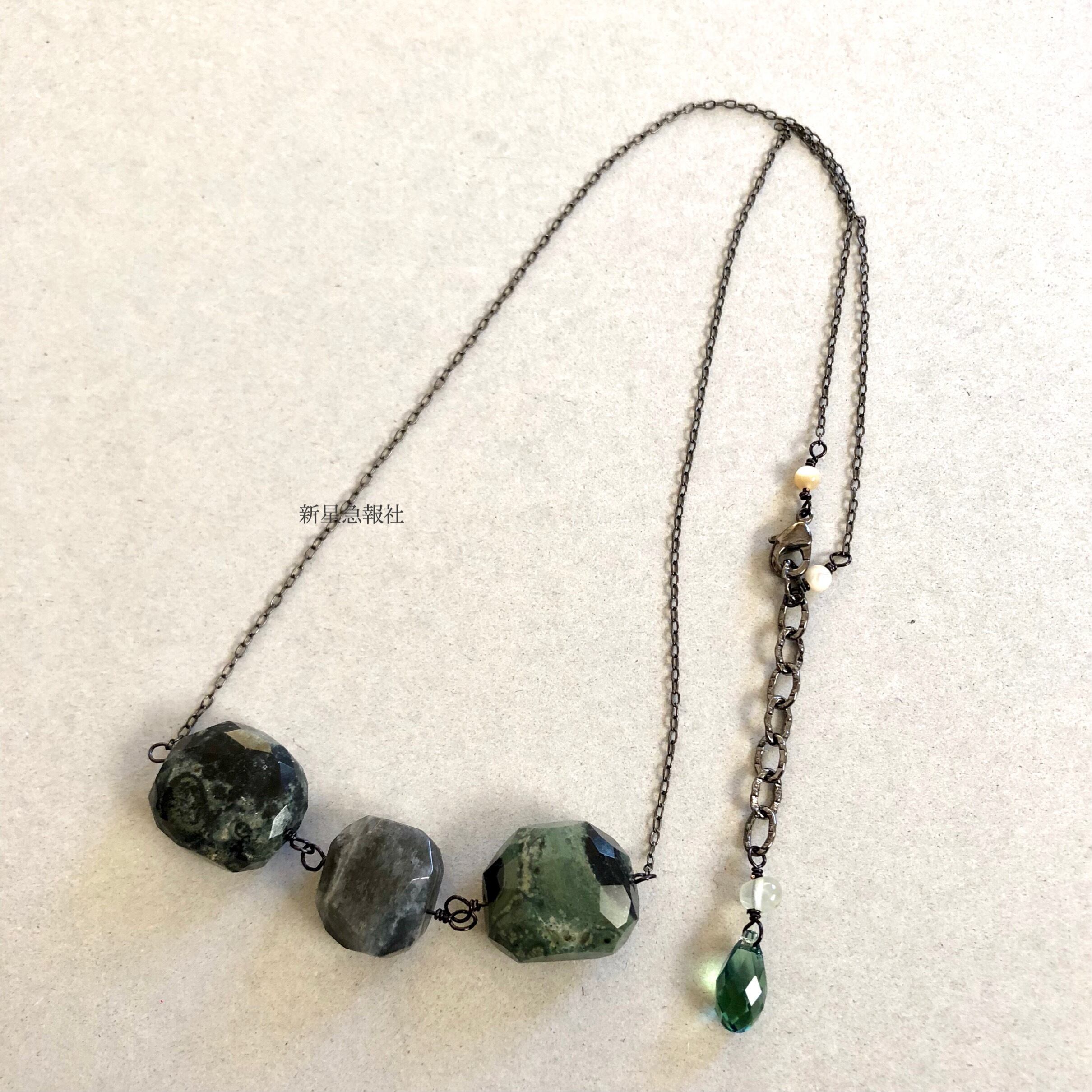 アクセサリーはカンババジャスパー、ラブラドライト、
