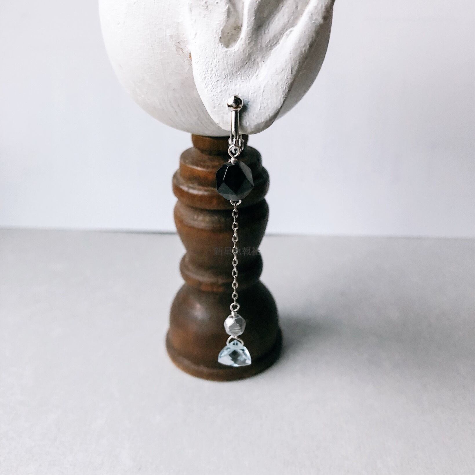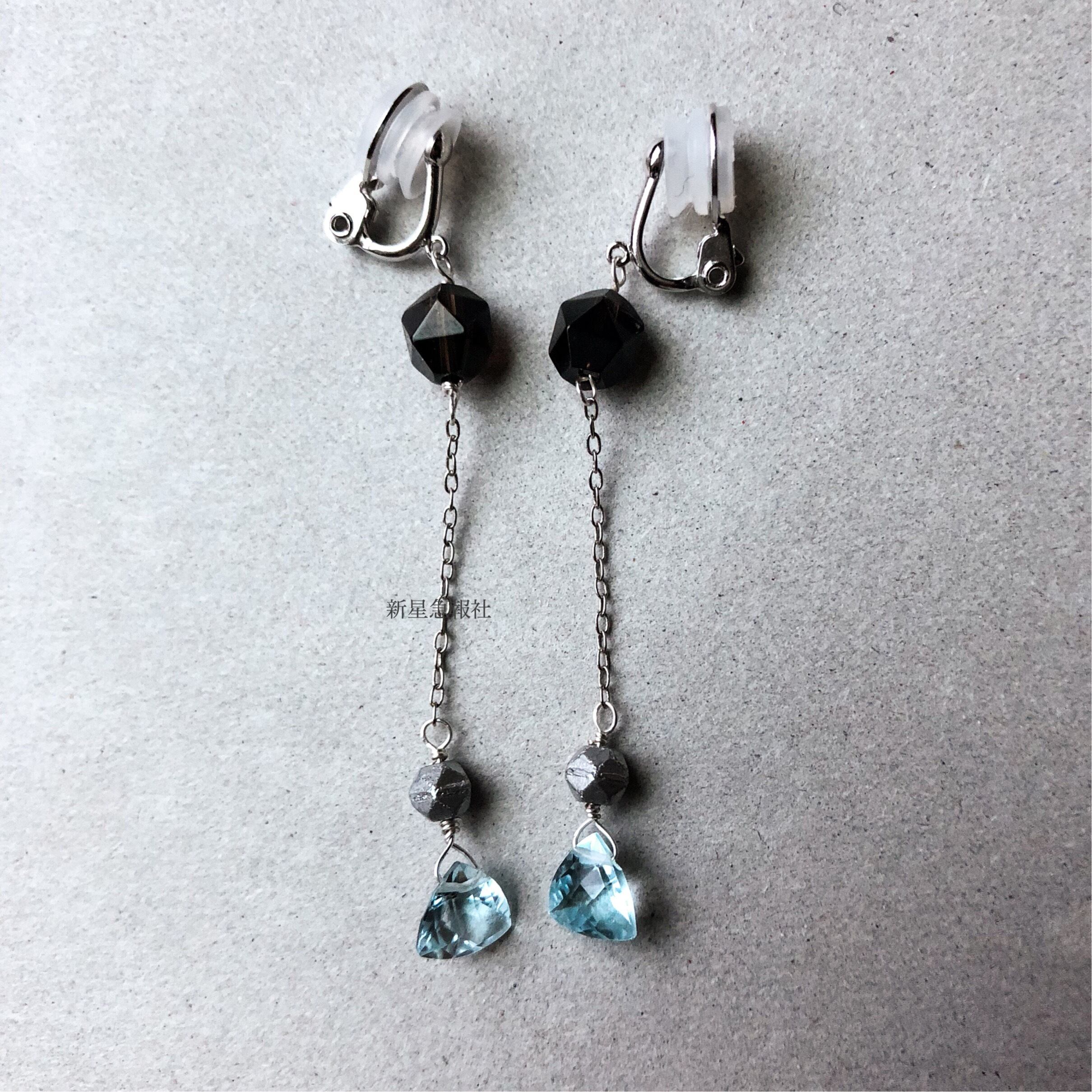 アクセサリーはスモーキークォーツ、ブルートパーズ、