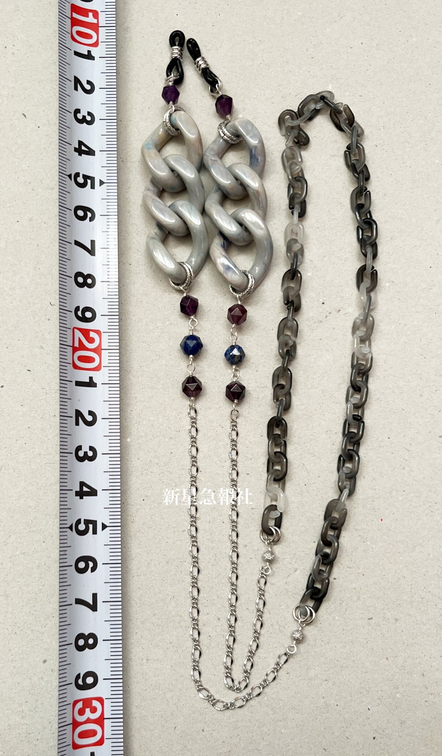 イタリア製の様々な色が混じったプラスチックのチェーンをメインに