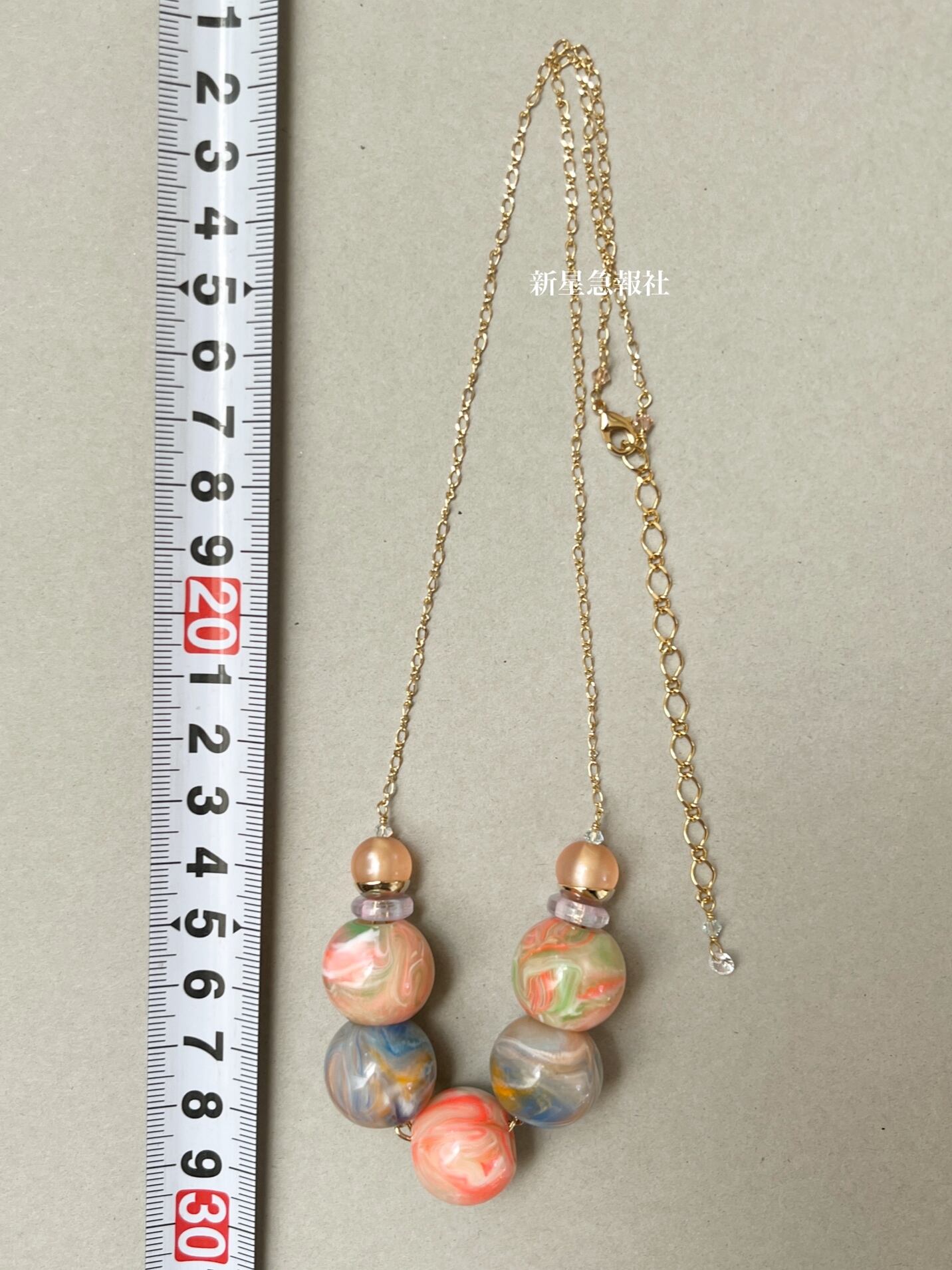 インパクトのあるマーブリングカラーのビーズを大胆に使い